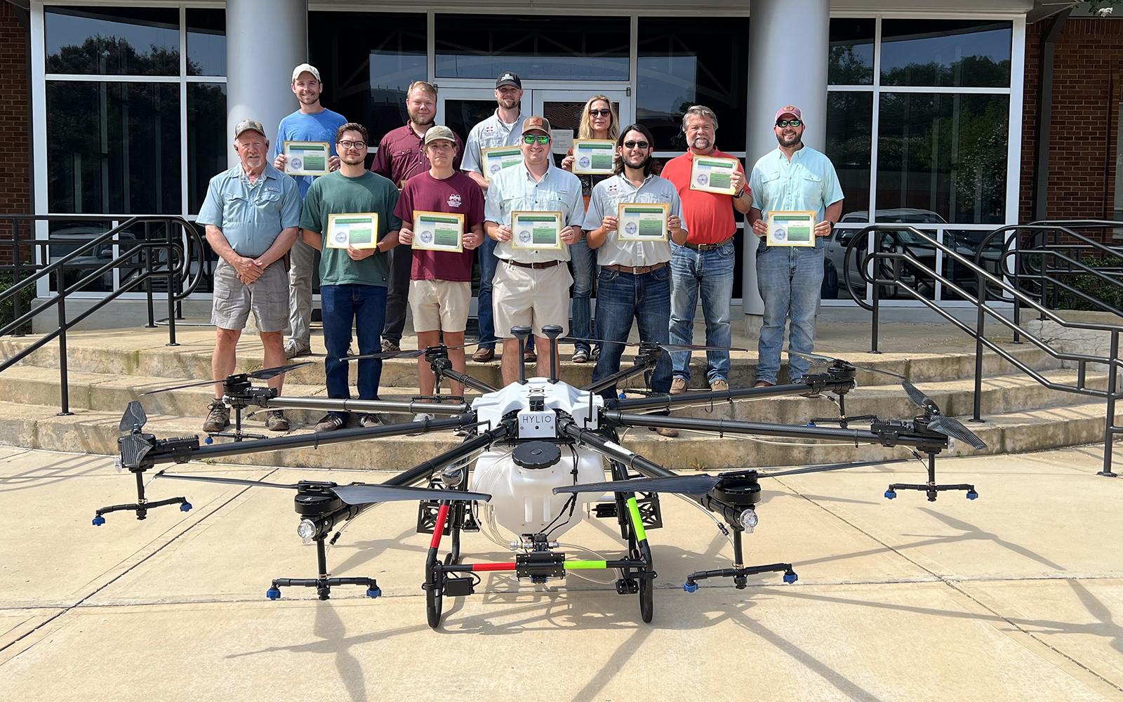 The training brings together nine participants, including seven MSU graduate students and two professional aerial applicators who hold leadership positions with the Mississippi Agricultural Aviation Association. Dennis Gardisser, recognized as the foremost expert on aerial applications of all forms, is conducting the training. While he has worked extensively with traditional crop dusters across the world, this is the first S.A.F.E. training program dedicated entirely to drone applications.