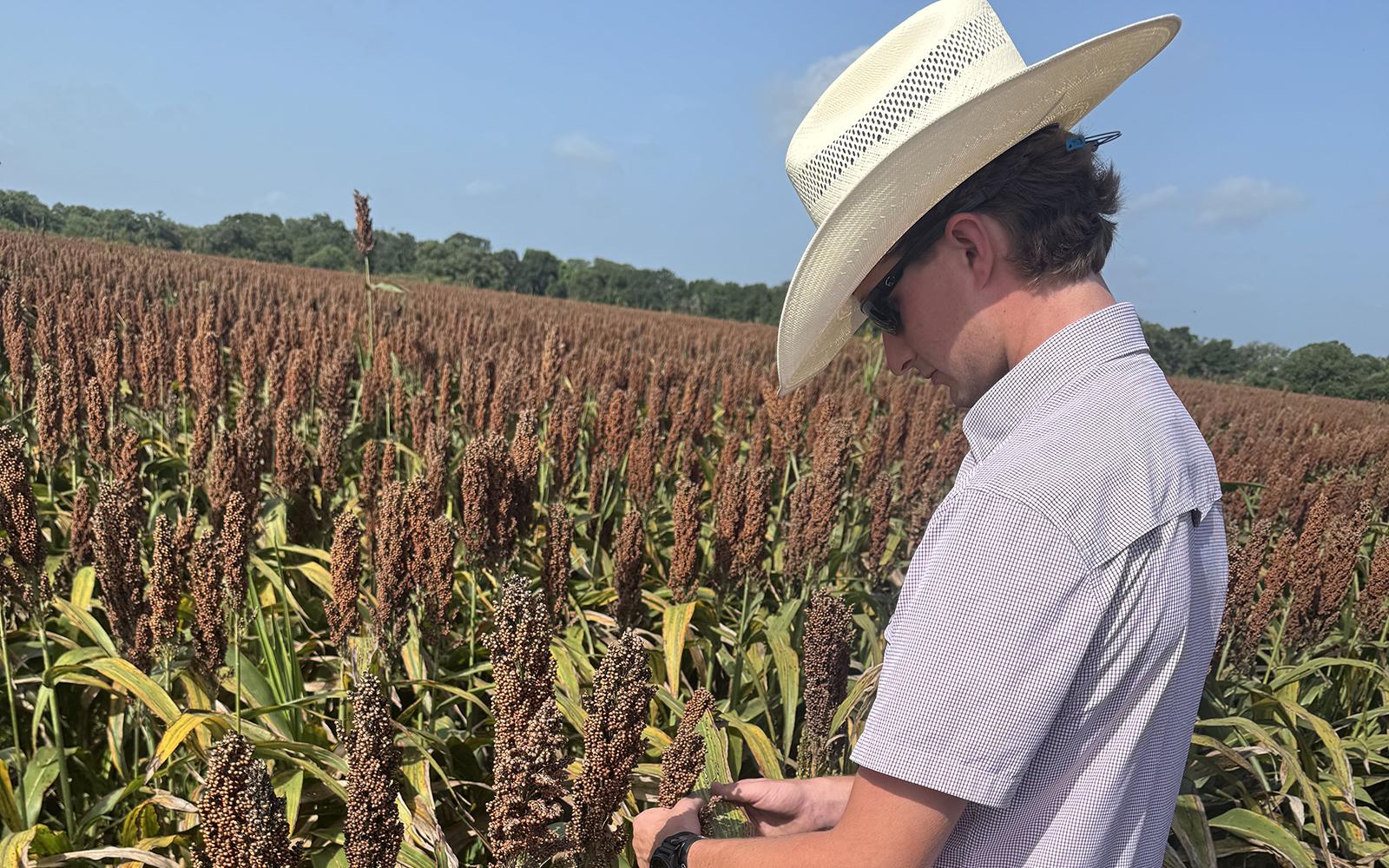 —Mayes Prescott, agronomy junior from Myrtle, working in the East Bernard, Texas, location.